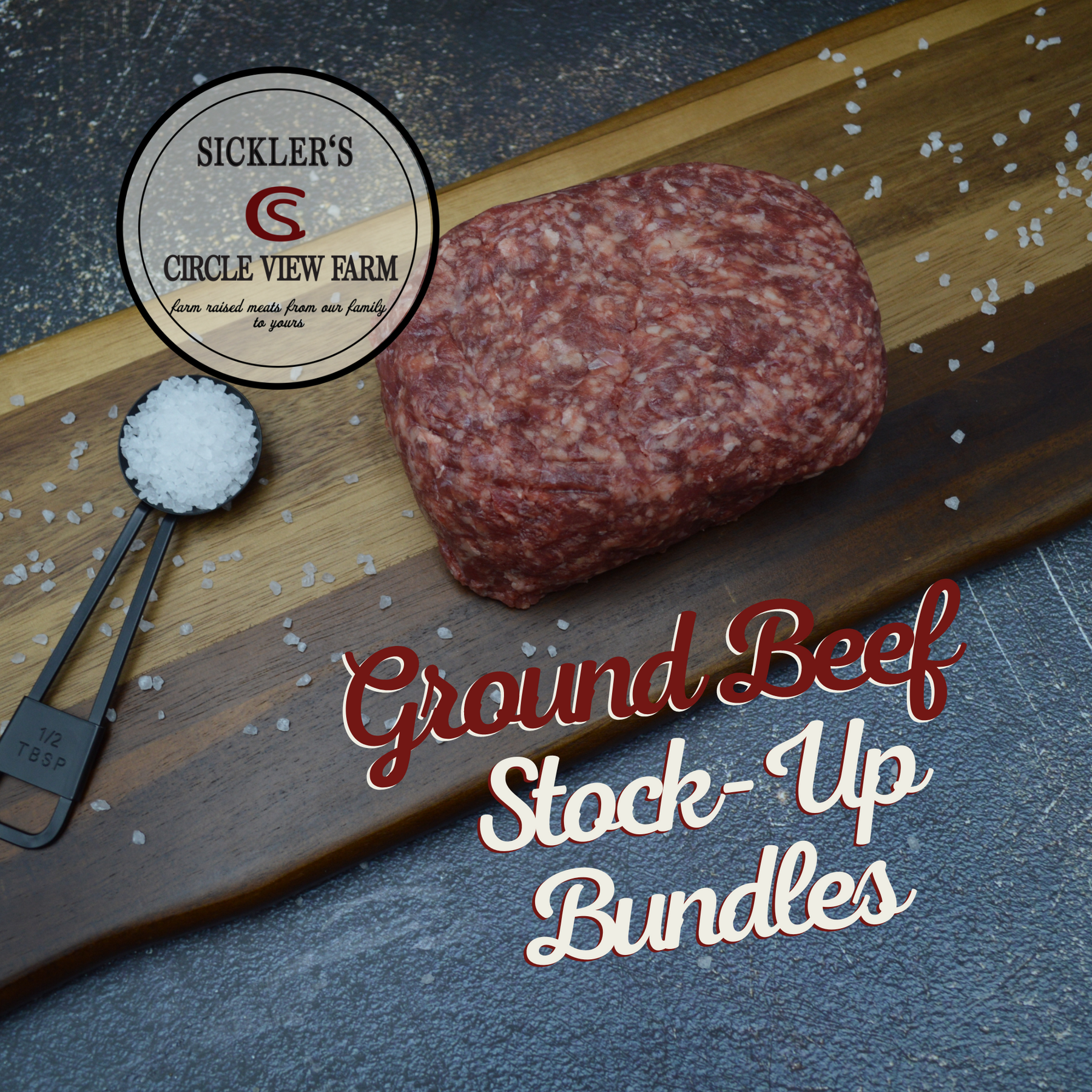 Purchase a one-time ground beef stock-up bundle. Ground beef is 80/20 and packaged in 1lb packages.